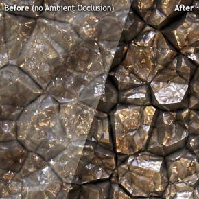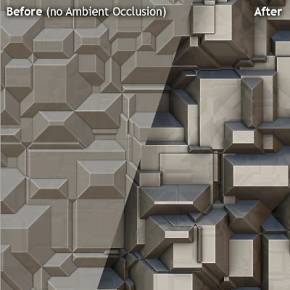 Ambient occlusion используется для определения того, как объект на экране реагирует на свет, чтобы реалистично освещать и отбрасывать тень от объекта в зависимости от того, где расположен источник света. Полученное изображение будет гораздо ярче и реалистичнее.