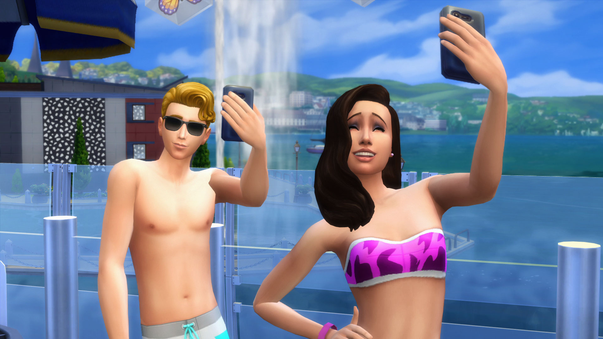 Общественный бассейн. Бомбочка! И хотя новый бассейн будет доступен всем игрокам, когда выйдет дополнение «The Sims 4 Веселимся вместе!», лучше всего он будет выглядеть с новыми интересными предметами, которые мы создали специально для данного дополнения. Мы добавили множество новых украшений для общественного и природного бассейнов, среди которых дорожки для бассейна, новые бордюры и целое разнообразие цветов для воды в бассейне. Самый замечательный предмет для бассейна из дополнения «The Sims 4 Веселимся вместе!» — трамплин. Симы могут прыгать с трамплина в воду и изумлять друзей идеальным задним сальто или веселить их уморительными прыжками животом об воду.