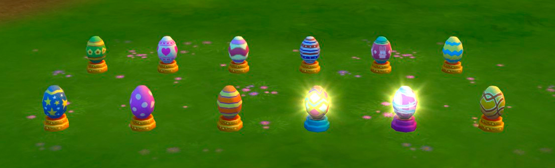 Среди 10 декоративных яиц, которые были еще в прошлом году добавили два новых, редких, которые выделяются свечением.
