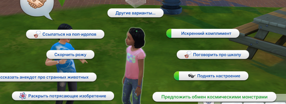 Как их искать мы уже разобрались, но вот а что делать если вдруг накапливаются дубликаты? С этим каталогом доступно новое действие общения между симами детьми "Предложить обмен космическими монстрами".
