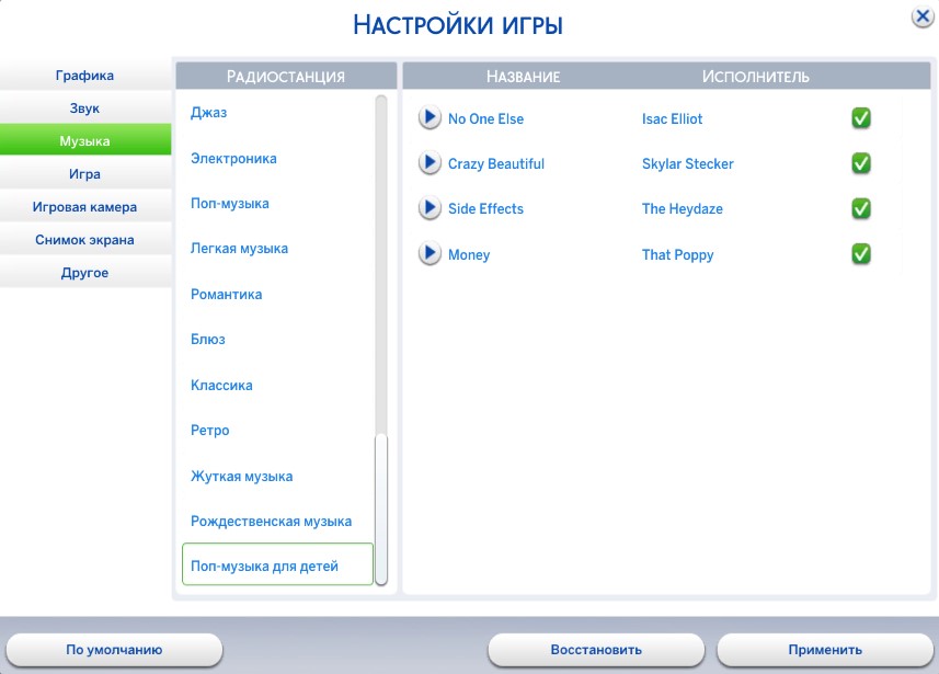 Ну и напоследок, в игре снова появилась новая музыкальная станция "Поп-музыка для детей", которая включает в себя 4 замечательных трека. В том числе и популярный трек «Crazy Beautiful», певицы Скайлар Стекер (Skylar Stecker), который она перепела на симлише специально для каталога.